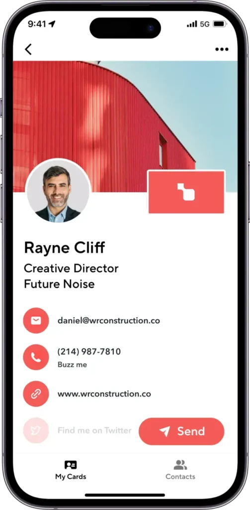 When you meet face to face, your recipient can scan your digital business card’s QR code or smartphone widget. You can also download your unique QR code and add it to your website, brochures, billboards, the contact section of your website, wherever you like!